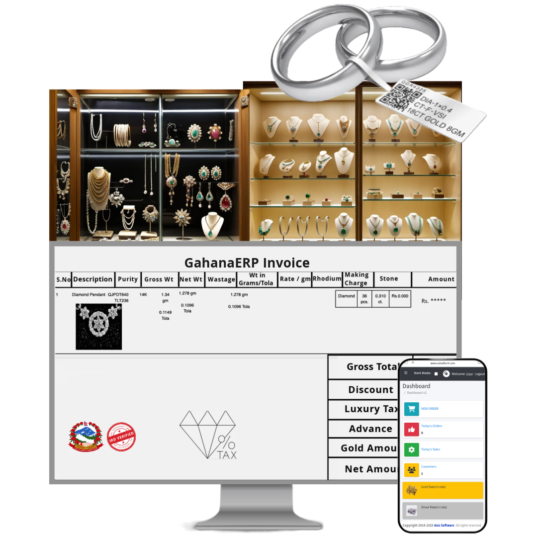 Our Jewellery Billing Software is developed in Nepal by a team of Chartered Accountants, experienced software professionals, and leading jewellery business owners. Designed specifically for jewellery retailers and wholesalers, it offers smart billing, inventory tracking, karat-wise stock management, and easy sales reporting — everything you need to manage your jewellery business efficiently and accurately.